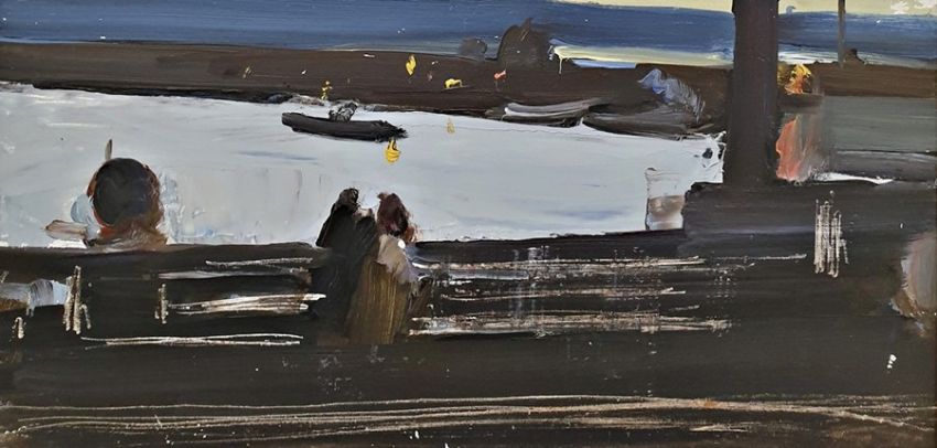 20th century school Oil on panel Twilight river scene, 22cm x 45.5cm Condition ReportPlease see attached images