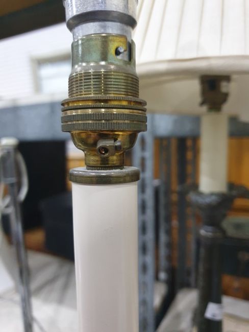 Pair brass table lamps, possibly converted candlesticks.