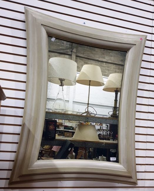20th century mirror of rectangular form, with pinched sides, in painted frame