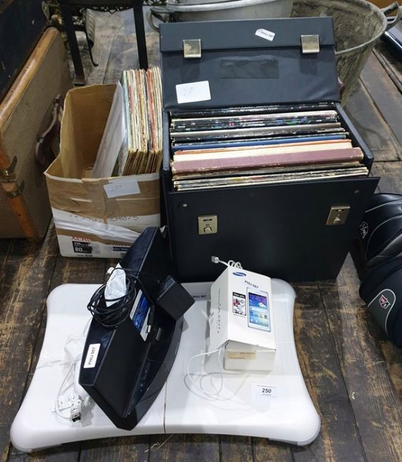 Philips iPod, Samsung Galaxy S mobile phone and a quantity of assorted records including classical and pop Condition ReportApprox 51 LP's plus two box sets, Beatles, ELO, Donna Summer, several 1980's hit compilations Andy Williams , and popular classical