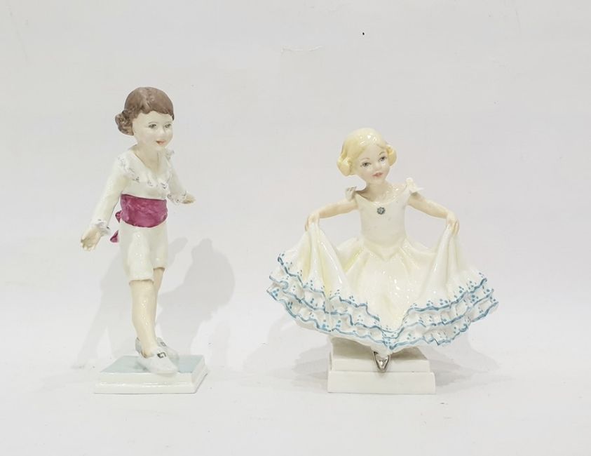 Royal Worcester Doughty figure 'Masquerade', no.3360 by Freda Doughty, girl with white and blue dress and a Royal Worcester Freda Doughty figure 'Masquerade', no.3359, boy wearing pink sash (2)