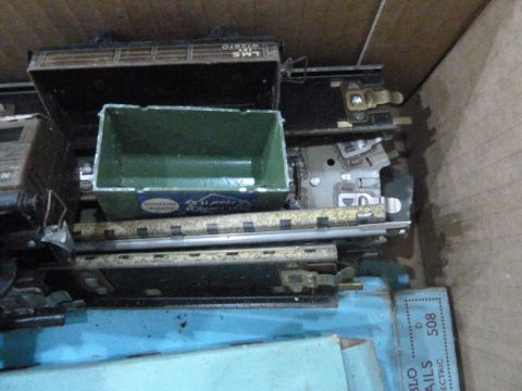 Small quantity of assorted vintage trains to include boxed Hornby '00' gauge EDL1 streamlined locomotive and tender, quantity of Hornby track and some carriages (1 box) Condition ReportAll  playworn