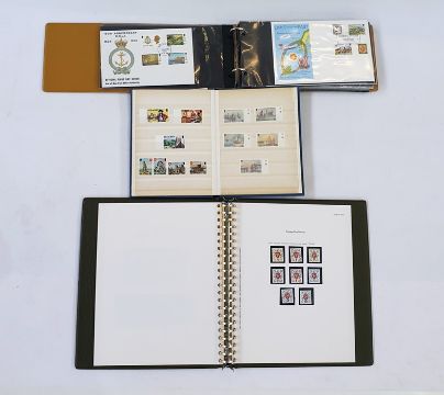 Isle of Man stamps,selection of mainly mint GB stamps in sheets,  Mint, First Day Covers, booklets, Presentation packs, etc., a black stock book packed with GB stamps to 10 shillings, used and Red stock book with mint and used plus maroon book with blood mint GB stamps