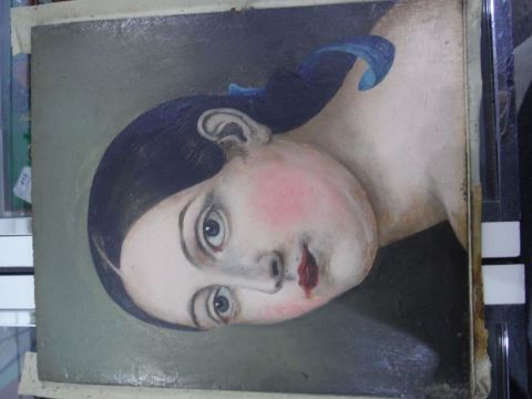 19th century schoolOil on canvasHead and shoulders portrait of a girl wearing blue ribbon in her hair, 23 x 26 cmsCondition Reportsee images