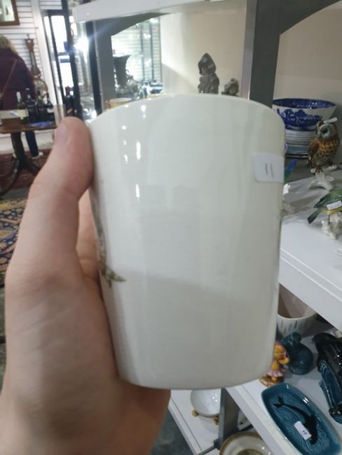 Some of the coloring on the bowl is fading, and there are some chips to the base. The cows have both lost a horn. Some of the other ceramics have some ceramic grazing. Lots of the ceramics have some discoloration. One has a large chip on the rim. See attached images