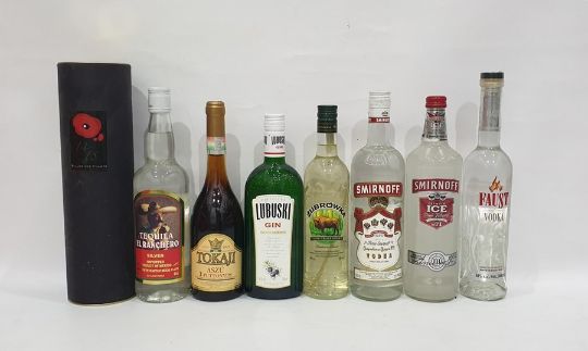 Eight bottles of assorted alcohol to include Tequilla, Tokaji Szu, three Puttonyos, Lubuski gin and Zubrowka Bison Grass vodka (8)