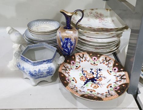 Limoges porcelain dessert service of 9 pieces, 19th century porcelain low tazza with Japan pattern decoration, quantity of Royal Worcester china tea plates, various sizes, and three other items