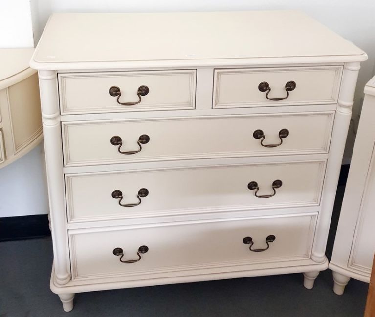 Cream coloured bedroom furniture to include chest of drawers, dressing table, etc (5)