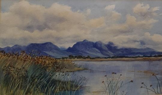 E Strueben ( 1868 - 1936)Set of five watercolour drawings - assorted South African scenes, landscapes with mountains in the background, all signed (5)Condition Report23.5 x 38.25 cm, (picture with hut) 24 x 43.5 cm, (picture with white foreground and purple flowers) ( 24 x 38.5 cm ) x 3