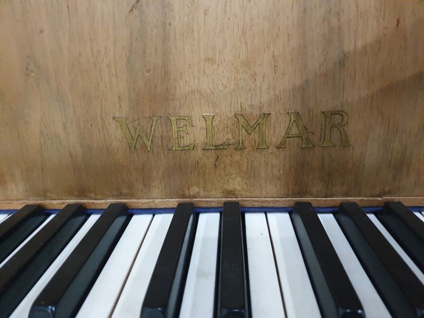 Walnut cased baby grand piano by Welmar