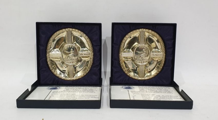 Two silver commemorative oval dishes