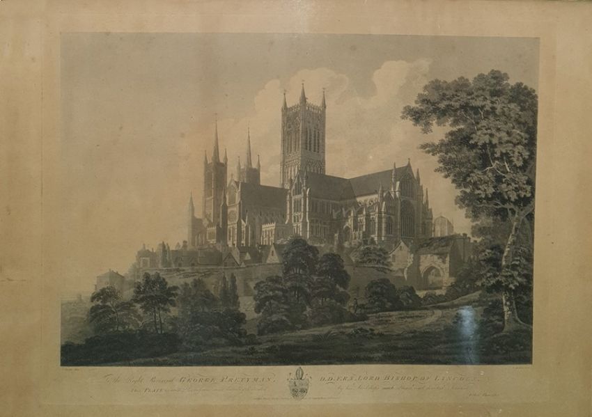 Framed print of Widdecombe Fair (damaged framed and no glass) Still life of pansies Engraving after T Malton and I Buckler of Lincoln Cathedral (framed) (3)