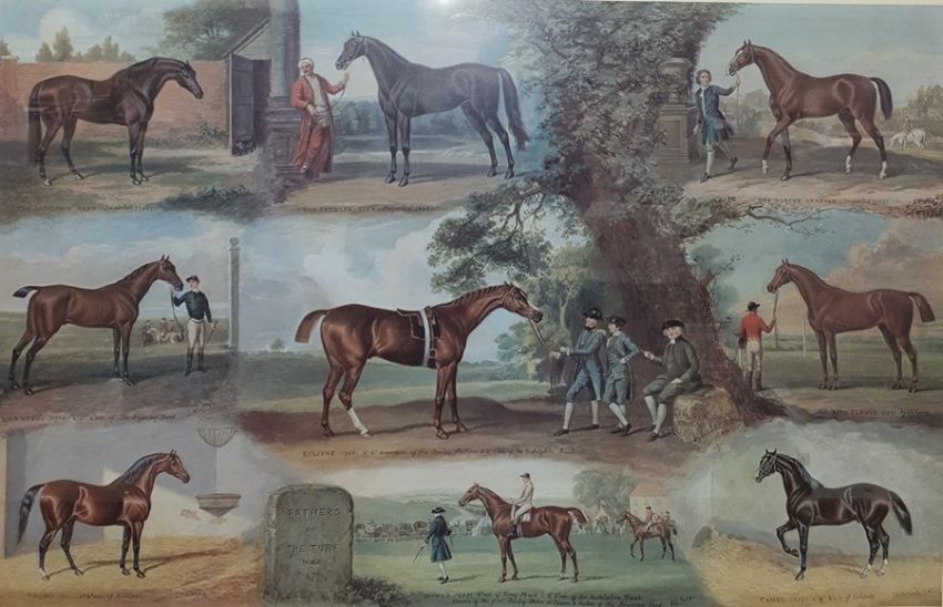 Colour print by John Beer, 1683-1822 "Fathers of the turf", 47 x 65cm,together with After M Coward Colour print, Delusions of grandeur, 173/850, signed in pencil lower right, 38 x 47cm, published by Sally Mitchell (2)