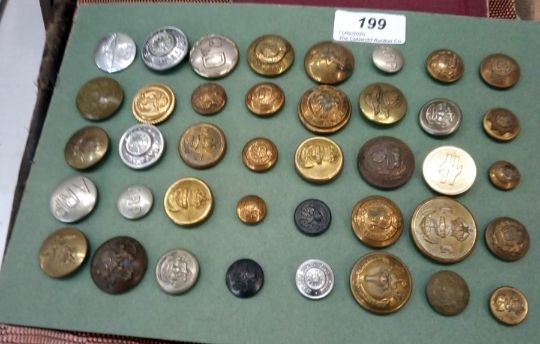 Quantity of military brass buttons, military manual of Map Reading and Field Sketching 1912, military photographs, menus and other ephemera