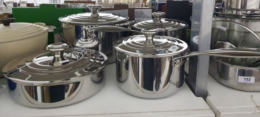 Four stainless steel Le Creuset pans with lids (4) Condition ReportSee extra photo's