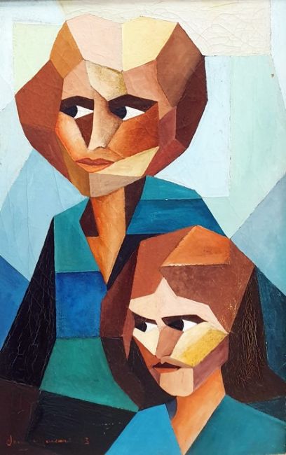 20th Century School,Oil on canvas, Cubist portrait of two figures, indistinctly signed lower left and dated '83 (41 x 25.5cm)