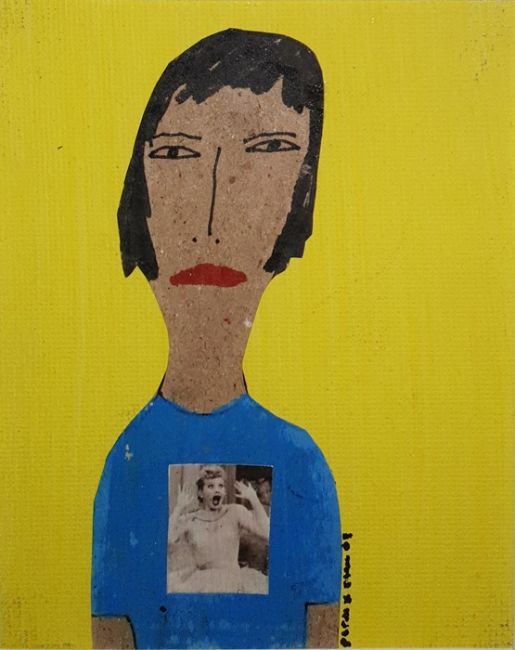 Patrick-Earl Barnes (b.1964) Mixed media collagePortrait study on yellow ground, signed bottom right (12 x 9.5cm) together with Patrick-Earl Barnes (b.1964)Mixed media collagePortrait study on pink ground, signed bottom right (17 x 12.5cm) (2)