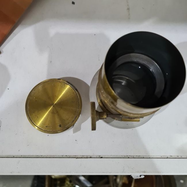 The attached lens has a 2cm diameter. The extra lens is 11 cm tall x 6.5 cm wide, the glass lens is 4 cm in diameter - and is also a horizontal enlarger instead of a camera