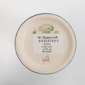 Moorcroft pottery inverse-baluster vase, cream ground with slip trail floral decoration, 19cm high