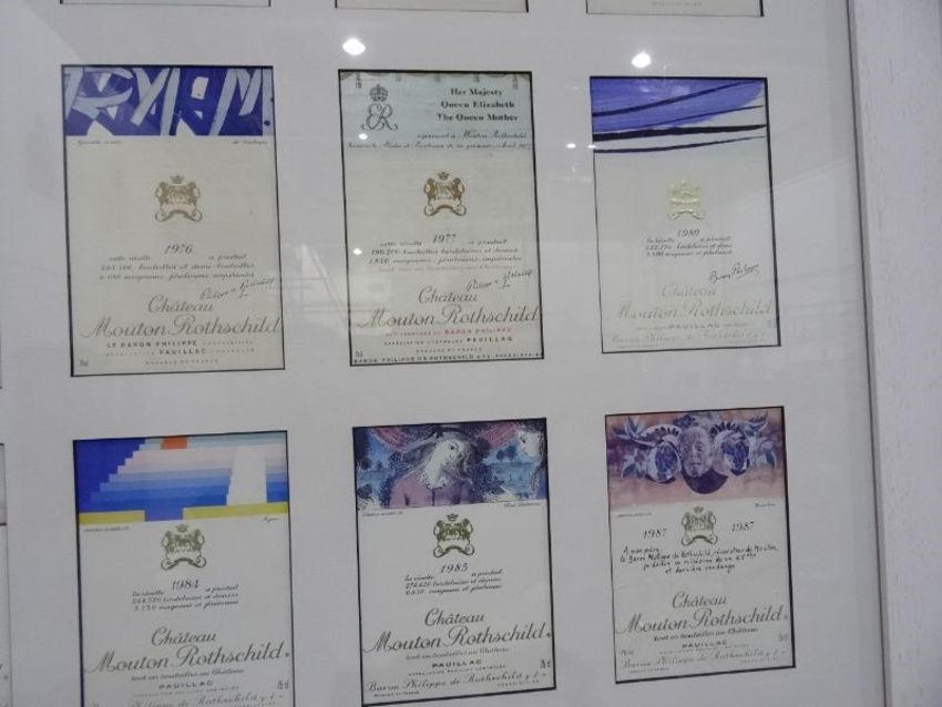 Framed wine labels mainly Chateau Mouton Rothschild and a box of canvas prints of wine labels (1 box and 2 pictures) Condition Reportsee images