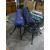 Metal garden table painted dark green with a dark green metal garden chair, a folding garden chair, and two picnic chairs folding in their original carry cases (5)