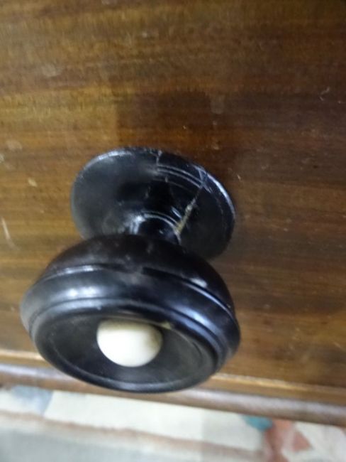 19th century mahogany chest of two short over three long drawers, the rectangular top with moulded edge, the drawers with turned ivory insets and ivory round escutcheons, the whole on peg feet, 108cm x 109.5cm Condition Reportsplit to top - filled. some chips and losses. some handles with minor damage. water marks. General wear and tear.