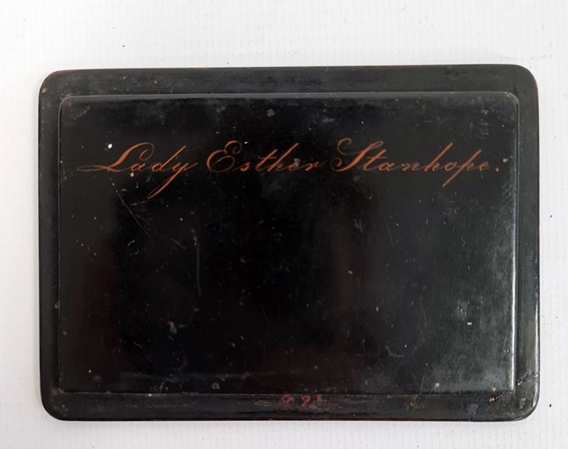 19th century papier mache print of Lady Esther Stanhope, unsigned, 9cm x 6.5cm
