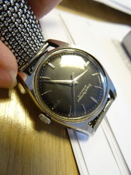 Gent's Girard Perregaux Gyromatic stainless steel wristwatch with black dial, baton numerals, side button and the expanding mesh strapCondition Reportwe do not guarantee working condition. The case is scratched. Inscribed Girard perregauy gryromatic to face. The diameter is 3.2 cm approx. See attached images.