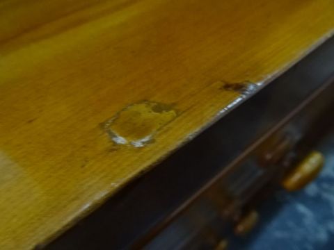 Late 19th/early 20th century satinwood chest of two short over three long drawers, plinth base, 96cm x 106cmCondition Reportsome splits, old repair to top, general wear and tear, altogether not bad
