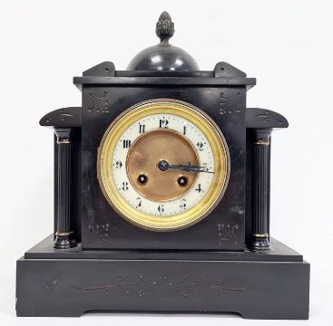 19th century black slate mantel clock with eight-day movement by "R & Co., Paris"