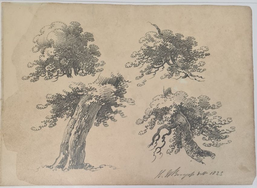 Henry William Burgess (1792-1839)Various pencil sketchesStudies of trees, gates, bridges, buildings, arches, etc, some signed and dated 1823, unframed, 37cm x 26.5cm (8)