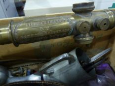 Collection of horse brasses and a miniature telescope (1 box)