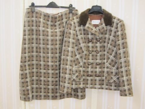 Jean Muir crepe black coat, with a matching dress, a Jean Muir bottle green jacket with matching skirt, a tweed suit labelled Mattli, velvet collar and a maxi skirt (6)