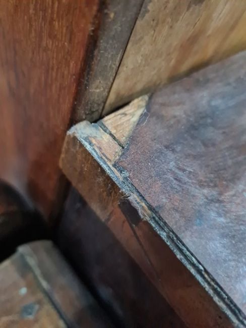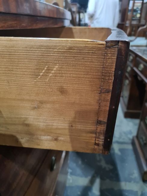 19th century mahogany bowfront chest of two short over three long drawers, 108.5m x 109cmCondition Report52 cms at deepest point. There is some damage to both the corners and sides of the top. Two of the draws have splits to the bottoms. See attached images, various signs of general wear and tear