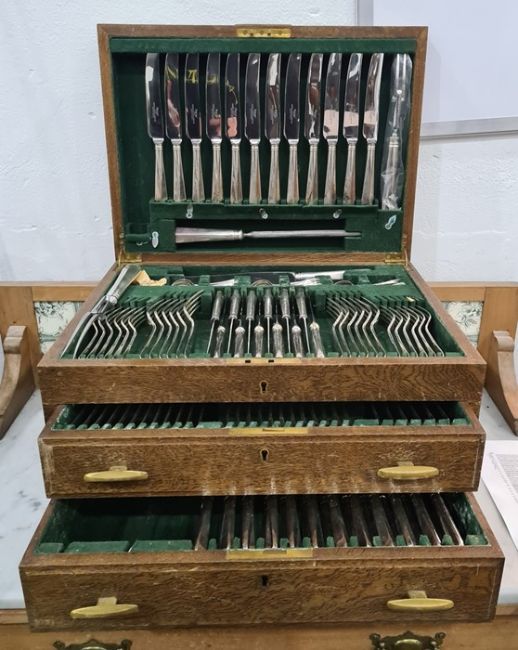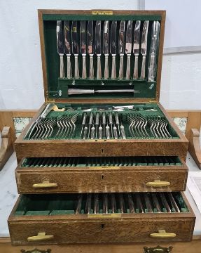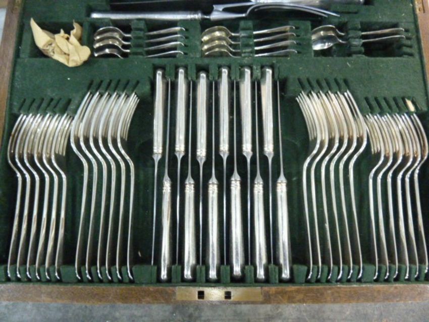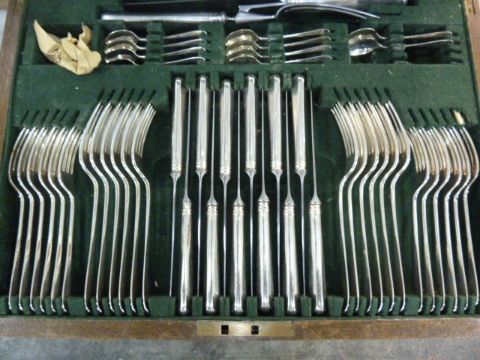 In general the canteen is in good order. Some few tarnish marks, there are surface scratches to the smaller knife handles. It has been used but is a smart set in my opinion only. PLease see images