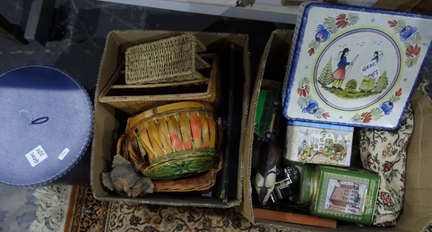 Mixed lot of ceramics, old tins, some toys and games, bookends, doorstops etc. etc.