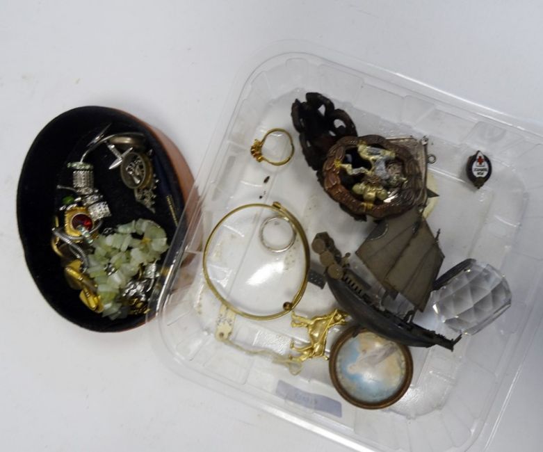 Silver compact, circular and engine-turned, small quantity of costume jewellery and jewellery boxes (2 boxes)