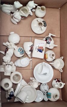 Quantity of crested ware china, a set of six glasses and a vintage hanger