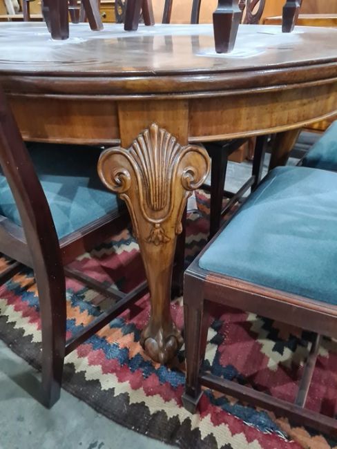 There is a surface crack to one of the legs as well as wear the other legs and the sides. There are some scratches to the top. The table does not have its turning handle. See attached images.