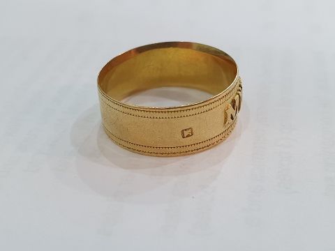Some light surface scratches, some tiny knocks to the edges, general wear and tear commensurate with age and use.There is no obvious sign of repair. The ring size is O. The correct weight is approx 3.7g. See photos for more detail.