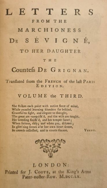 Five antiquarian books to include:-Gibbon, Edward"The History of the Decline and Fall of the Roman Empire", new edition, 1 vol, printed for T Cadell 1831[Mr Yorick]"The Sentimental Journey through France and Italy", a new edition adorned with plates, printed by M Allen 1801"Letters from the Marchioness de Sevigne to her Daughter the Countess de Grignan ...", vol 3 only, London J Coote 1760Flechier, M "La Vie du Cardinal Commendon Ecrite en Latin ...", 3rd edition, vol 2 only, 1702, bkpl Jemima Duchess of Kent 1712 and Thomas Philip Earl de Grey Wrest Park"The Spectator", 1 vol, 1777 (5)