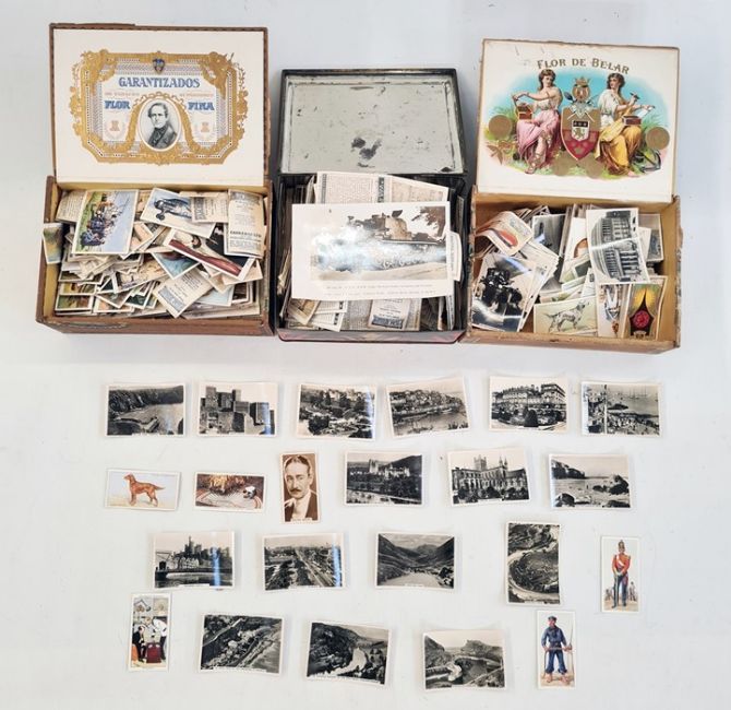 A quantity of loose cigarette cards, a cigar box of cigarette cards, a tin of cards, Churchman, Players, Beatall etc (1 box)
