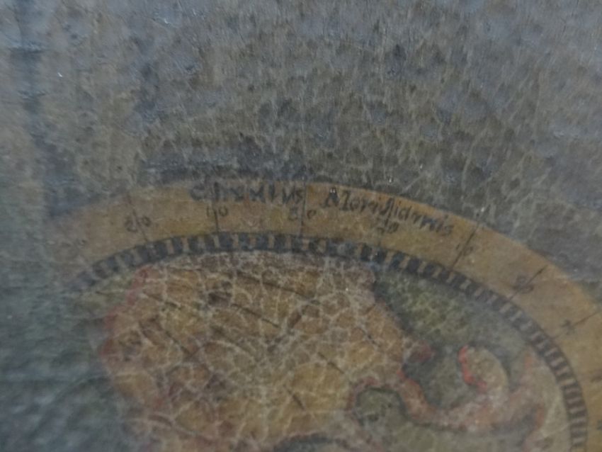 English school Oil on canvas Portrait of gentleman in mid-18th century dress, possibly Admiral Thomas Smith, the portrait showing gentleman in office studying navigational charts, a globe showing North America and the Caribbean featuring behind, a Masonic symbol to top right, 100cm x 73.5cmCondition ReportSee additional photos. Attribution of sitter is believed by the vendors family.