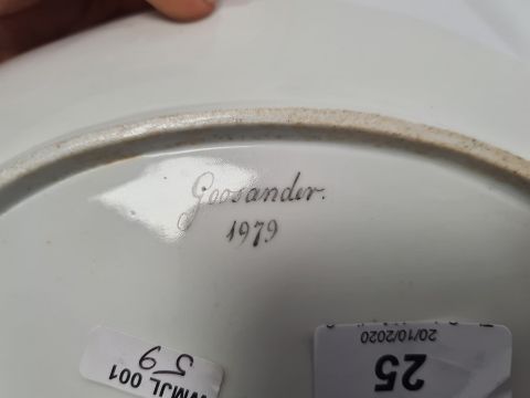 31. Artist’s Resale Rights (Droit de Suite). All lots in the catalogue marked are affected by this right, a royalty charge that we are required to collect from the buyer for all works of art that have been produced by living artists and remit to the artist’s collecting agent. This charge is only applicable on lots that achieve a hammer price of the UK sterling equivalent of 1,000 Euro or more and the amount cannot be more than 12,500 Euro, the charge for lots between1,000 Euro and 50,000 Euro is 4% of the hammer price, the the charge is calculated on a sliding scale on lots that sell over 50,000.01 Euro. The Euro rate of exchange applied will be the European Central Bank Rate on the day of the sale.