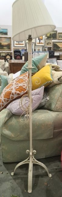 Pair of cream painted metal standard lamps with pleated shades (2)
