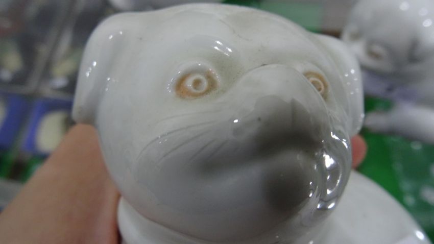 Three various Japanese Meiji period Hirado white glazed porcelain models of Akita puppies, each modelled in seated position (3) Condition Reportall generally okay, some minor scratches / marks. some original casting and glazing flaws