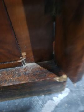 19th century Wellington chest of eight drawers, rectangular top with applied moulding to the pilasters, the whole on plinth base, 53.5cm x 109cm Condition ReportThere are some large cracks and chips to the top. A few of the draws and the front have some wear. One of the draws has a broken handle a couple others have loose handles. We do not have a key. See attached images.