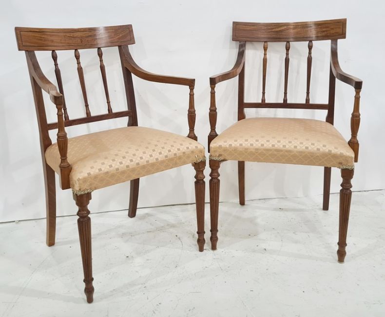 Pair of modern satinwood carver chairs with upholstered seats (2)