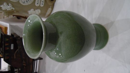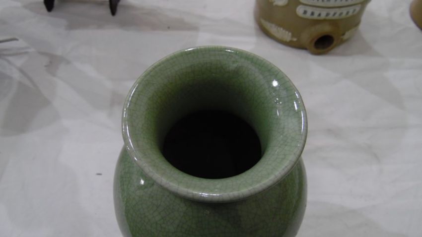 St Agnes part glazed blue and brown pottery ovoid vase, a green celadon-style crackle glazed vase, a collection of Torquay and Dartmouth pottery, a Beswick pottery model fox hound, a pair of brown pottery glazed meercats, a Toby jug, etc Condition ReportThere are no obvious cracks or other damage. See added photos