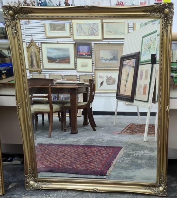 Modern rectangular mirror in gilt-effect frame, 126cm x 105cm approx